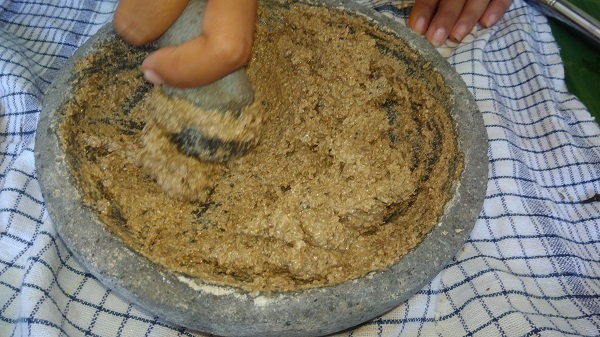 バリ島では、今も植物(生薬)を用いたJamu(ジャムゥ)が生活に根付いています。その数あるJamuの中の1つ、バリニーズスクラブのルルールまたはボレを、伝統の石臼ですり潰して作ります。手作りしたスクラブはレッスンで使ってみましょう。ご自身用にお持ち帰りも可能です。